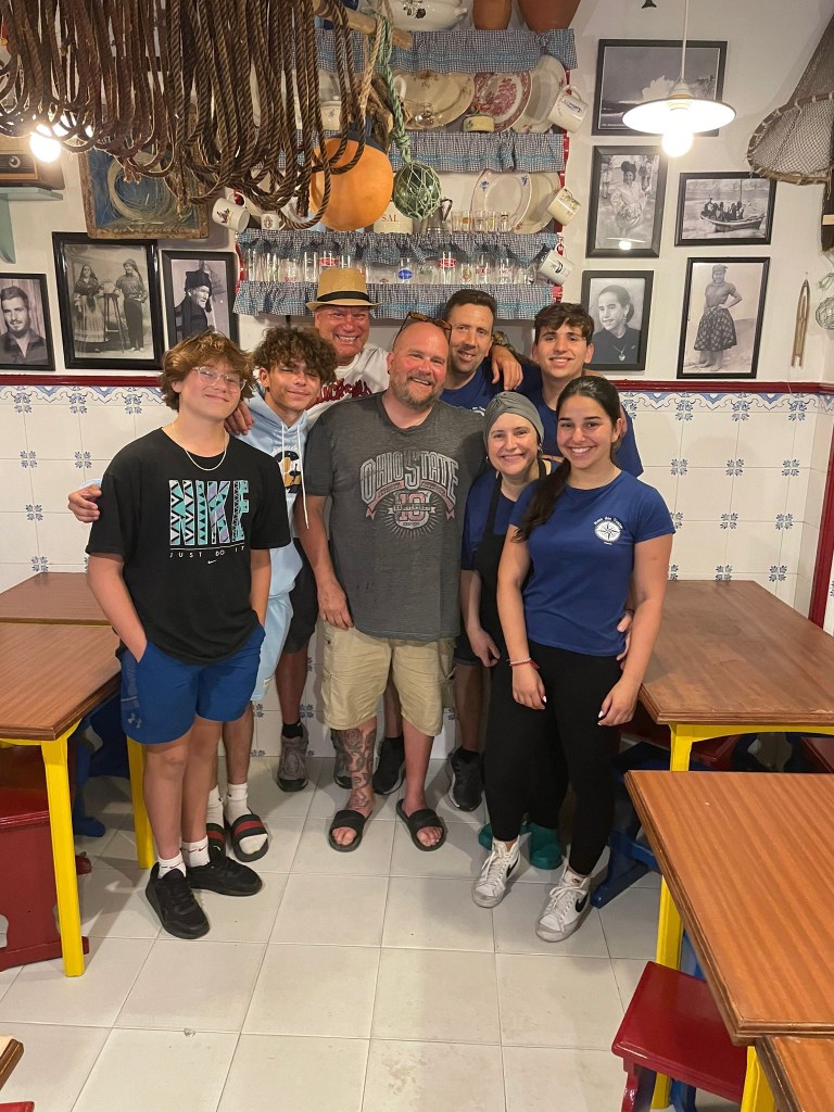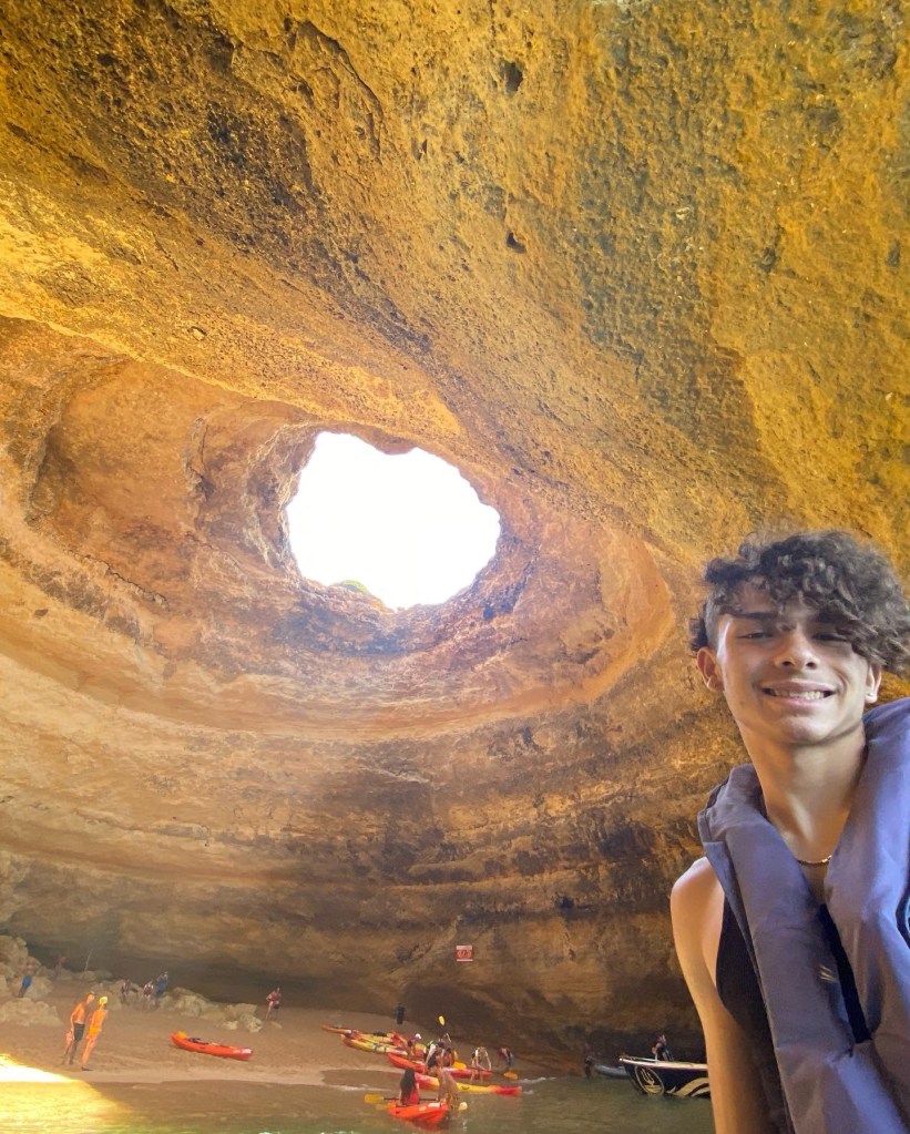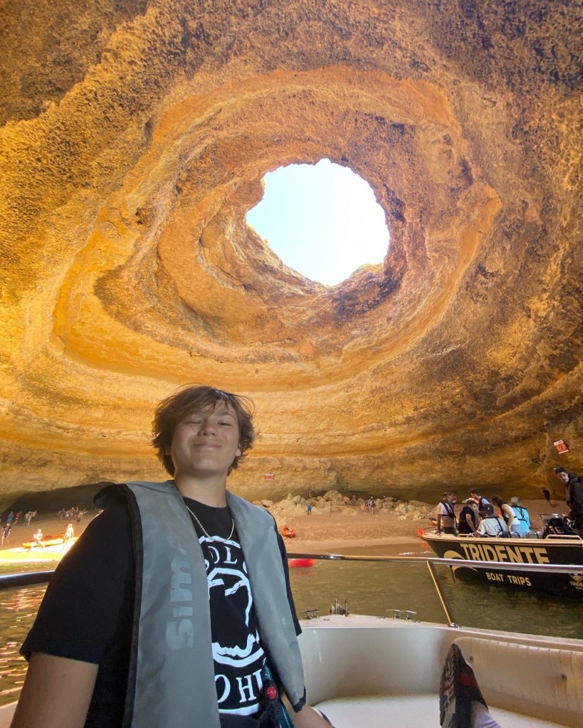 In Porto, they enjoyed eating Francesinha on the Riviera, the area along the Douro river. Our Airbnb was built in the rock formations in the mountain, like a house man cave! We took a city tour on a tuk-tuk and got a ton of pictures and memories.