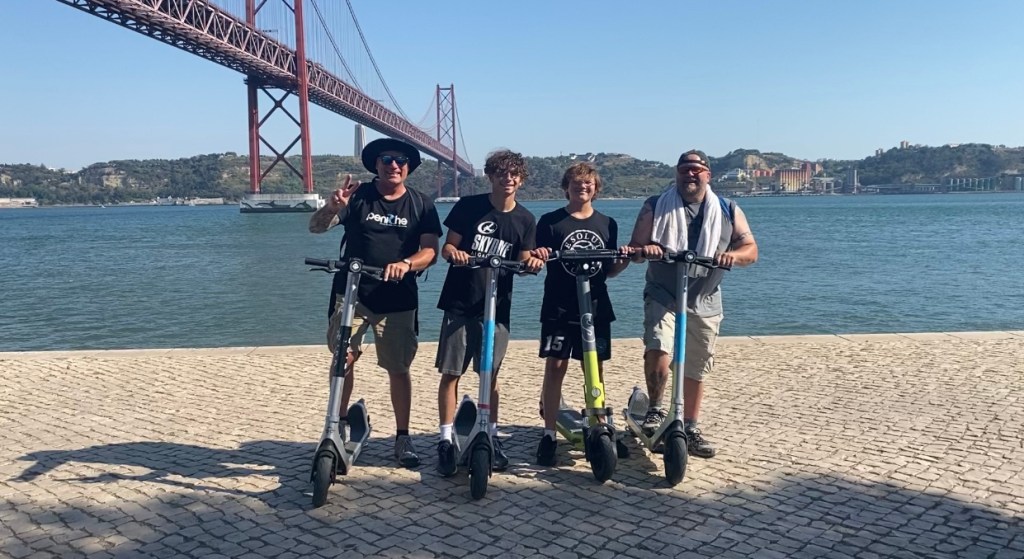 The boys were definitely excited for the second day which consisted of their first time surfing at a beach across the Tagus called Costa da Caparica. We hired an instructor for them and off they went. The water was frigid so needless to say they wore heavy wet suits, lol. Both of them got up on waves and can say they surfed in Portugal!